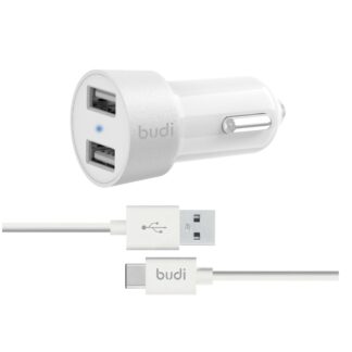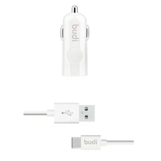 Budi – Ładowarka samochodowa USB + kabel USB-C (Biały)